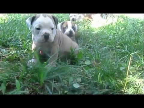 Cubby's puppies at four weeks - Coreyland Bulldogs - Coreyland Bulldogs' four week old puppies born July 1, 2013 out of Cubby and Pancho.
